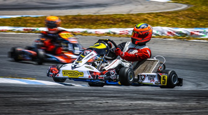 O segundo dia de corridas das categorias do Grupo 2 no 57º Campeonato Brasileiro de Kart, que está sendo realizado no Circuito Paladino, na Paraíba, terminou da melhor forma possível para o paulista Eduardo Perez (Power Tech Fitness | Technogym).