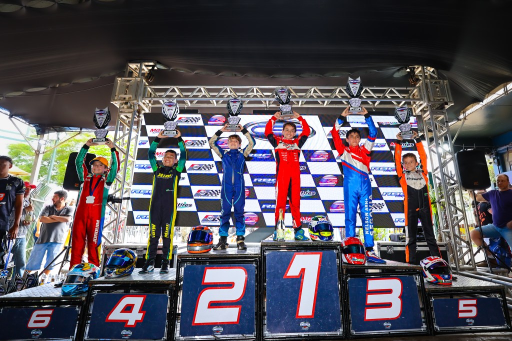 Murilo Dominguez correu em duas categorias diferentes – sempre com chassi Bravar – e na primeira delas, a Cadete, foi o principal nome da etapa. Segundo colocado na tomada de tempos entre os 28 inscritos, ele venceu as duas baterias e fechou a rodada no alto do pódio de Interlagos.