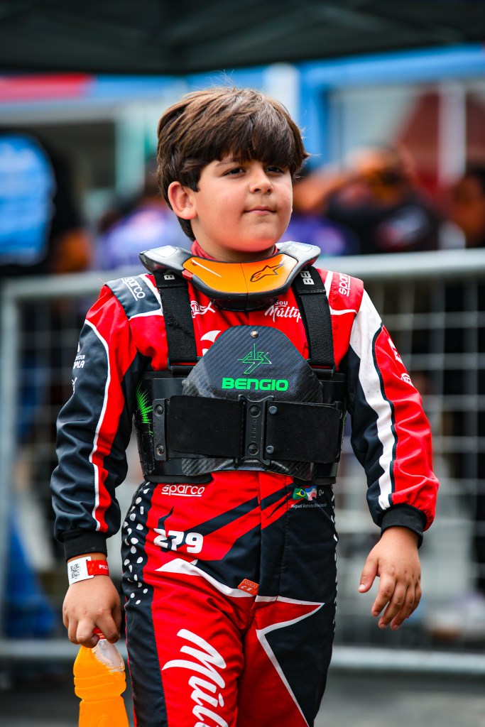 Competindo na categoria Mirim, Miguel encontrou um cenário desafiador logo na tomada de tempo. Com a pista molhada, o piloto do kart número 279 registrou 1min19seg529, marca distante do que havia planejado para a largada. Mesmo assim, manteve a concentração e seguiu em busca de evolução ao longo das etapas seguintes, encarando a experiência como parte fundamental de sua formação no esporte.