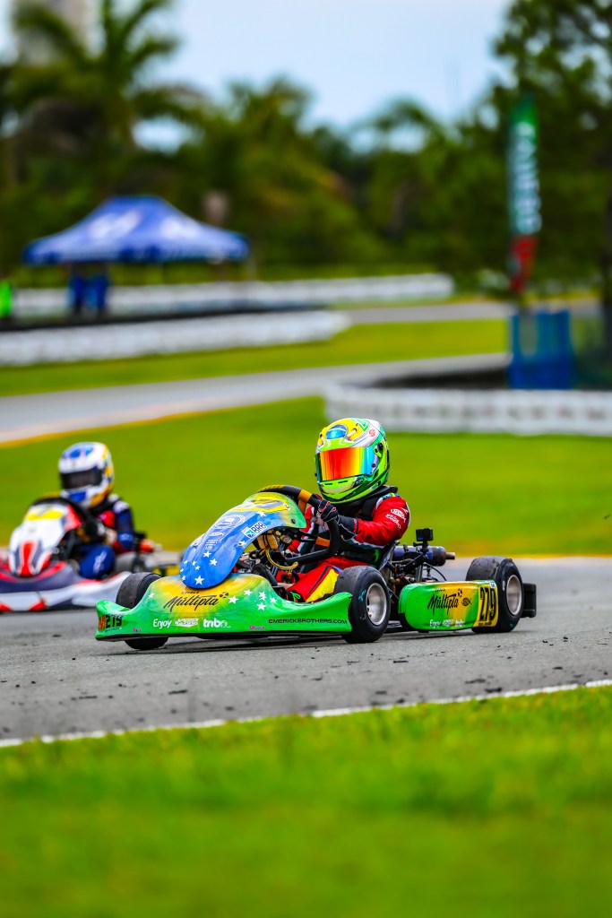 Joaquim Emerick, pela Cadete e vindo de boas atuações no Grupo 1 na categoria Mini, também precisou lidar com obstáculos logo no início. Com um grid lotado, 55 pilotos confirmados, ele alinhou no Grupo D, sabendo que cada volta seria decisiva.